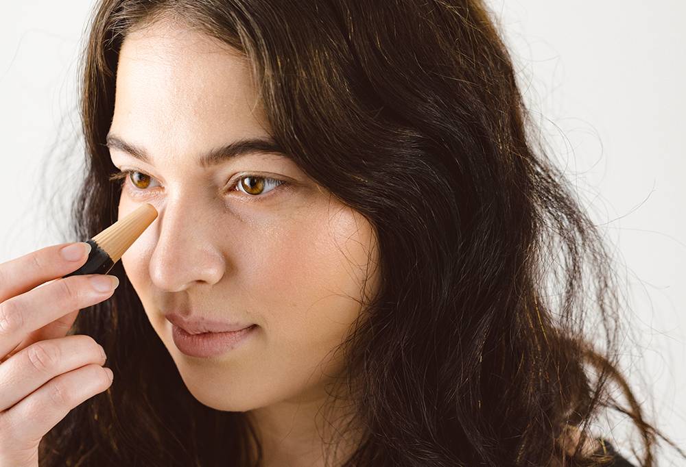 Using small strokes, apply the concealer directly to the area you want to cover, define, or brighten, and blend with the fingers. You can also apply your concealers by using a sponge, warmed on the back of the hand and apply. To highlight, glide over the highpoints of the face, such as the tops of the cheekbones, then blend with a brush.