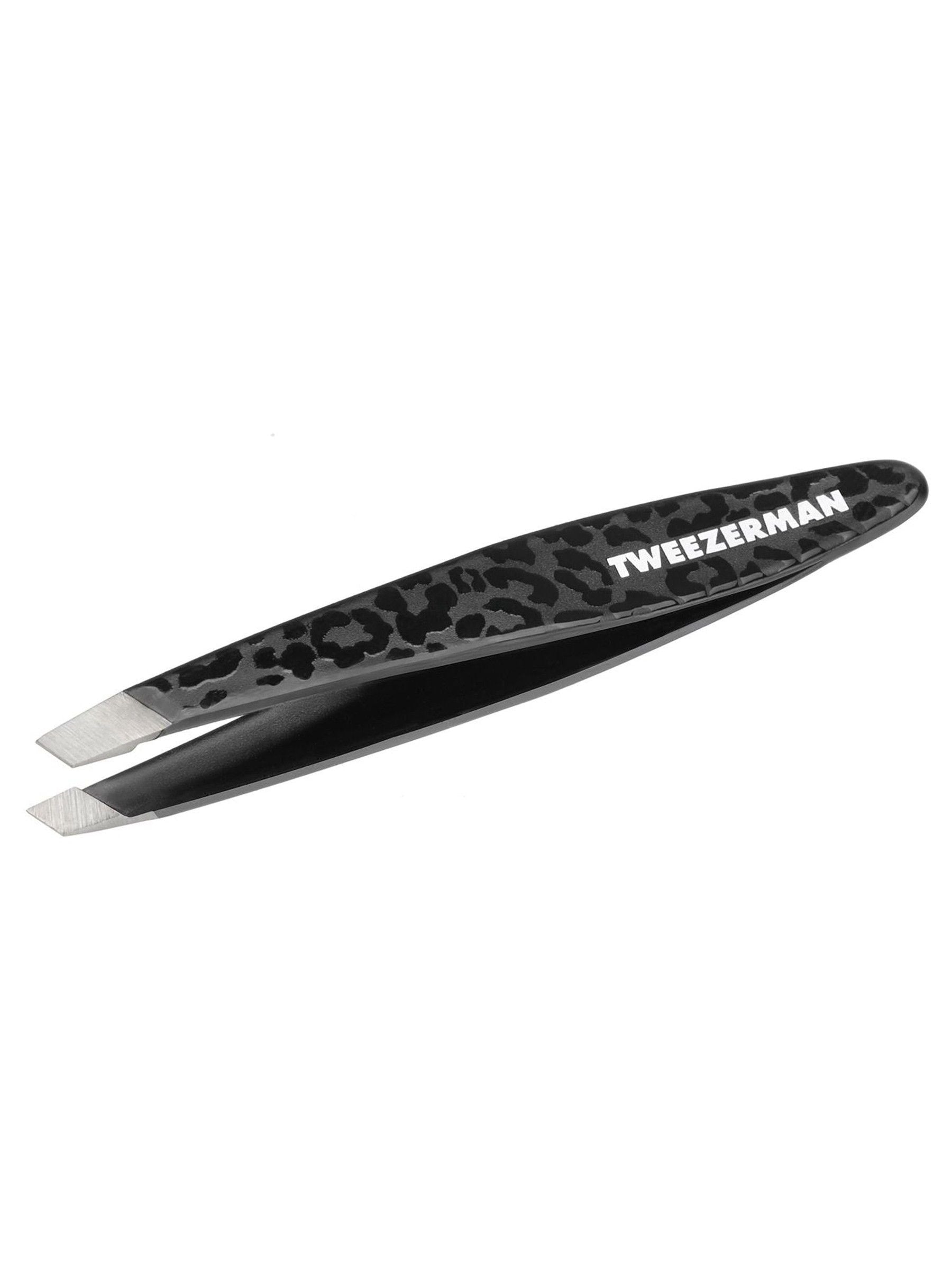 Tweezerman's Black Leopard Mini Slant Tweezer perfectly aligned hand-filed tips close evenly and firmaly to remove hair from the roots. Superior calibrated tension for comfort, control and true precision.