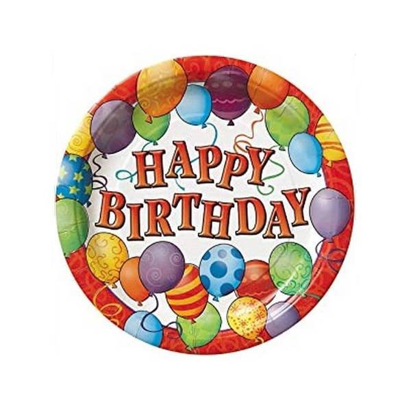 Each pack contains eight disposable plates designed specifically for birthdays. The festive design features printed balloon text, offering a coordinated and colourful touch to your party setup. These plates provide a convenient and practical solution for serving cakes and snacks efficiently.