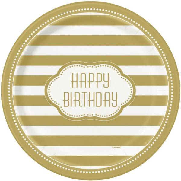 Unique Party Striped Birthday Party Plates (Pack of 8)