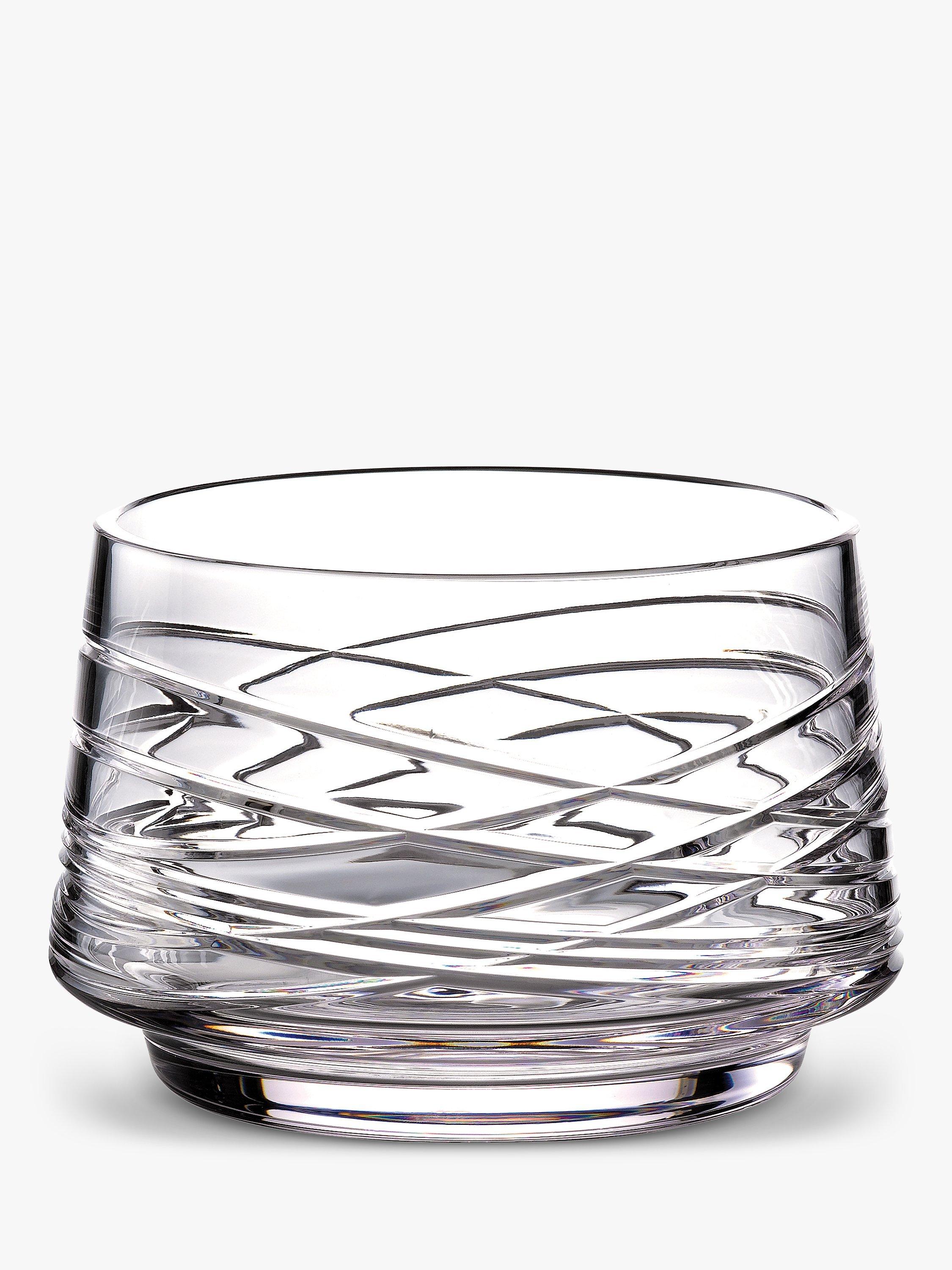 The Waterford Mastercraft Aran Cut Glass Bowl provides elegant serveware presentation, capturing superior Irish crystal cutting craftsmanship and rich heritage within its unique design. The weighty, footed foundation supports deep, slightly curved sides where intricate crisscross etching forms many spectacular diamond facets throughout the clear structure, making it truly unique.